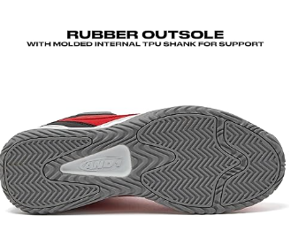 - 優れたグリップ力-ヘリンボーンのトレッドパターンを採用したフルレングスラバーアウトソールは、屋内外のコートで耐滑性とグリップ力を最大限に発揮。内部シャンクは、バスケットボール特有の爆発的な横方向の動きに対応するねじりサポートを提供する。