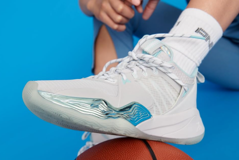 - GIRLS BASKETBALL SHOES - かかとのプルループが着脱を容易にし、クールなファッションカラーが人目を引く。