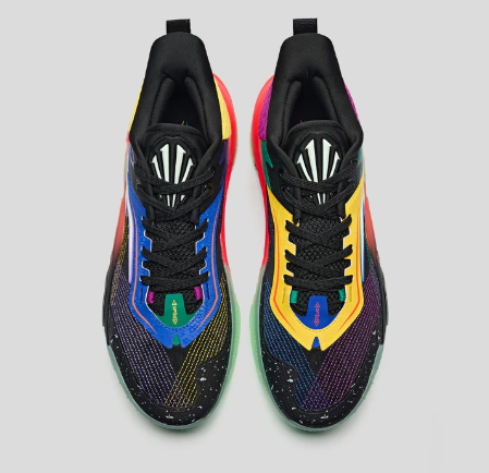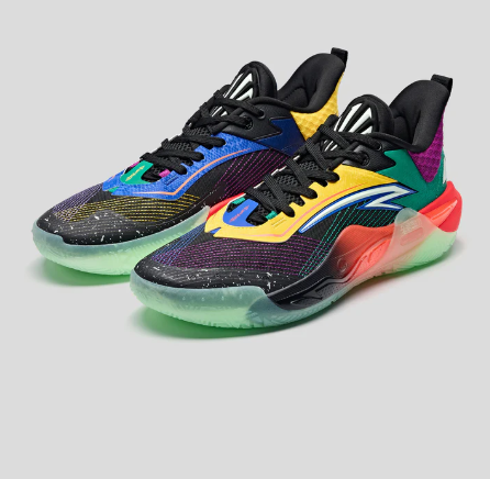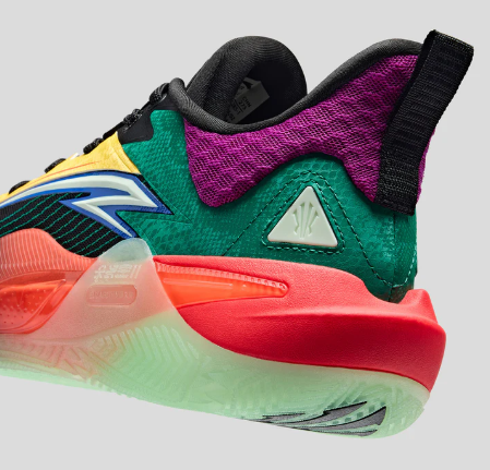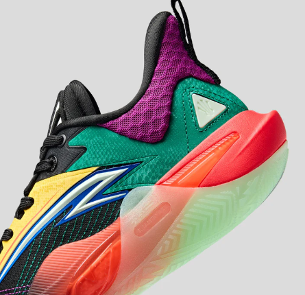 ANTA KAI 1 SPEED "Electric Horizon "カラーウェイは、レトロなチームジャージカラーと現代的なエネルギーを融合。カレッジフープとハイエナジーなコンペティションへのオマージュだ。