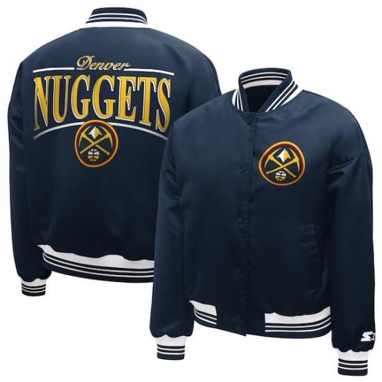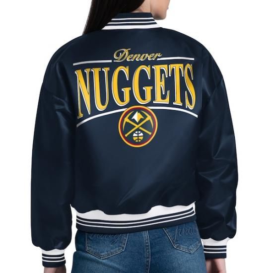 デンバーナゲッツ スターター レディース アーチ ストライプ フル-Snap サテン ヴィーシティ ジャケット - ネイビーはNBA公式グッズです。