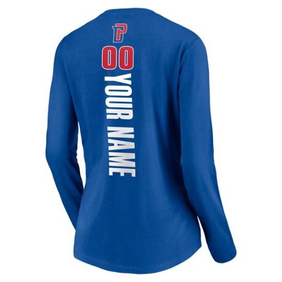 デトロイトピストンズ レディース プレイmaker (入れたい「文字」を備考欄に記入) ネーム&ナンバー ロングスリーブ Vネック Tシャツ - ブルーはNBA公式グッズです。