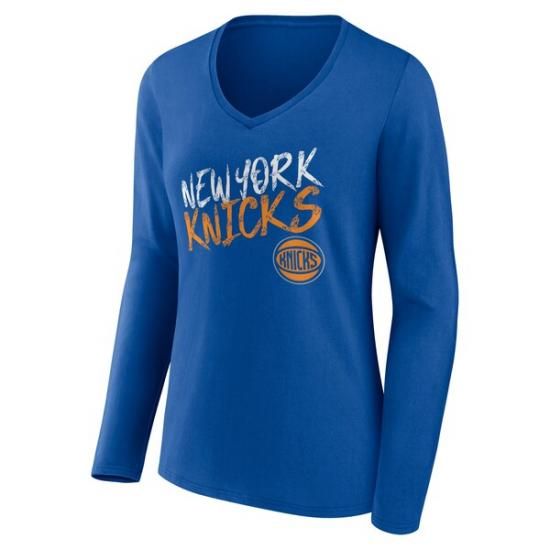 ニューヨークニックス レディース Hustle カスタム ロングスリーブ Vネック Tシャツ - ブ