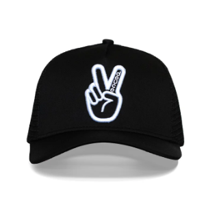ピース・トラッカーハットは、クールでトレンディなデザインです。