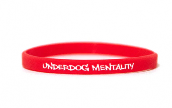 ブランドモットー「アンダードッグ・メンタリティ」と「DEUCE」の文字がリストバンドを囲みます。