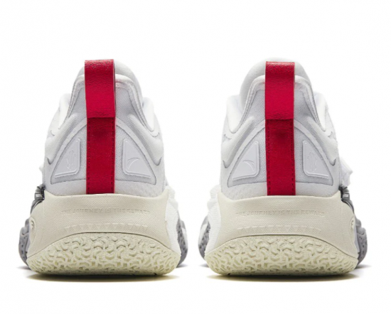 深い黒は彼の集中力と強さを、鮮やかな白はスピードと敏捷性を象徴。これらを結びつける鮮烈な赤のヒールストラップが、要素を完璧なバランスへと融合させます。